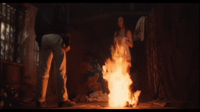 その名シーンは、廃屋の暖炉の前で展開されます。